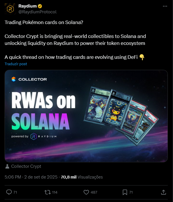 Um detalhe relevante é que, segundo o Collector Crypt, “100% dos fundos líquidos” arrecadados vão para a compra de cartas Pokémon físicas – informação confirmada pela equipe via Twitter.